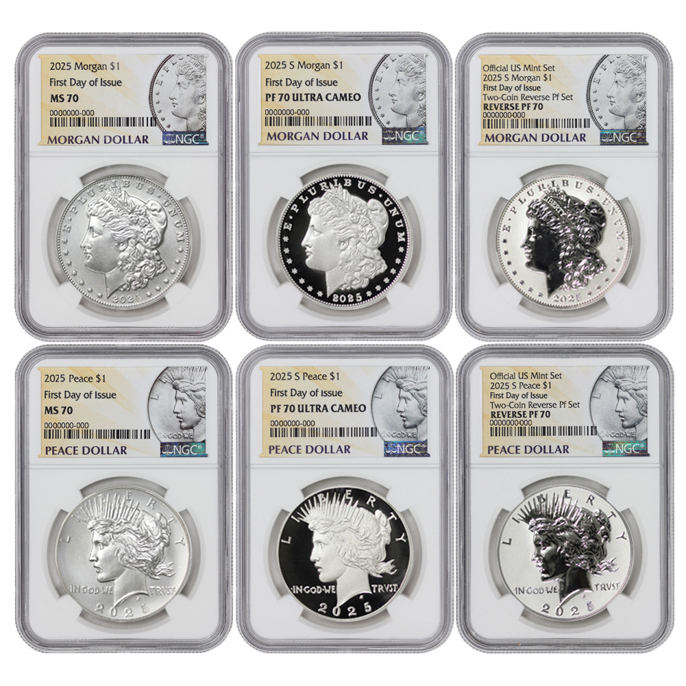 Set of 6 2025 $1 Silver Morgan & Peace NGC MS70, PF70UCAM, PF70 FDOI w/ OGP