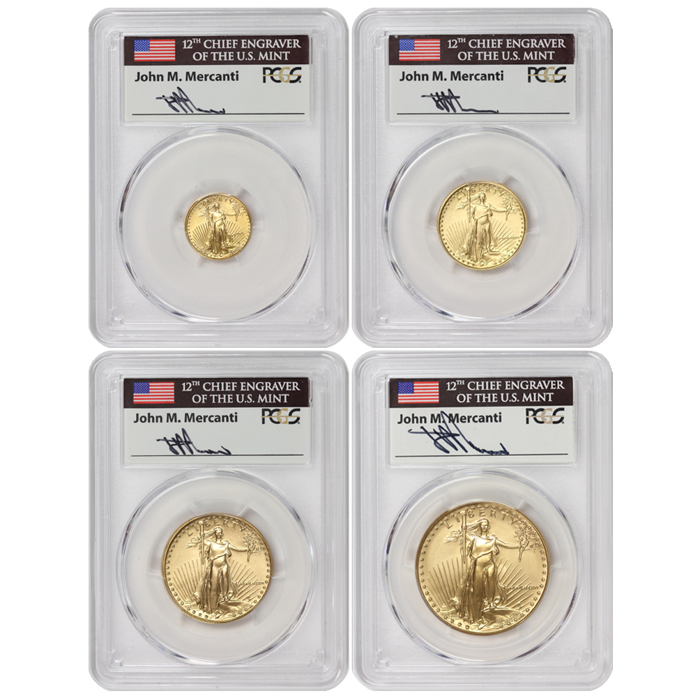 Set of 4 1986 Gold Eagle PCGS MS70 Mercanti Label