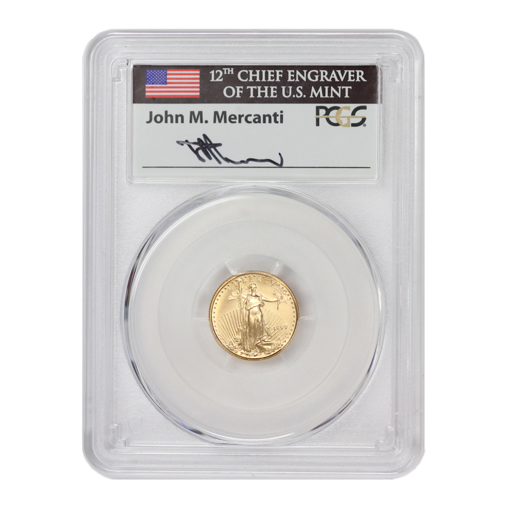 1999-W $5 Gold Eagle PCGS MS70 Unfinished PR Dies Mercanti Label