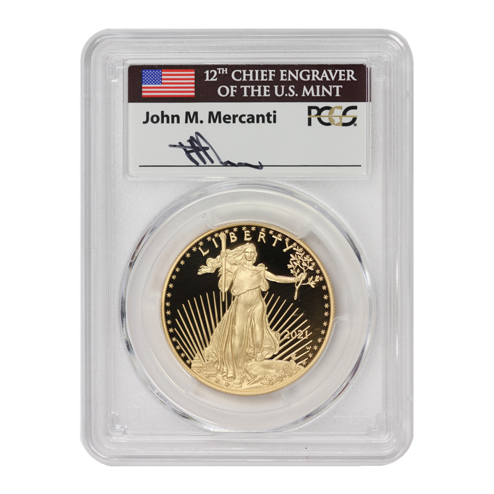 2021-W $50 Gold Eagle T1 PCGS PR70DCAM AR Mercanti Label