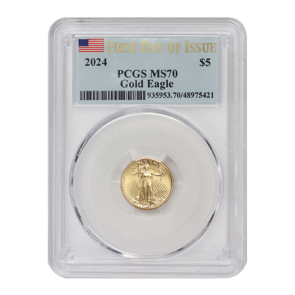 2024 $5 Gold Eagle PCGS MS70 FDOI Flag Label