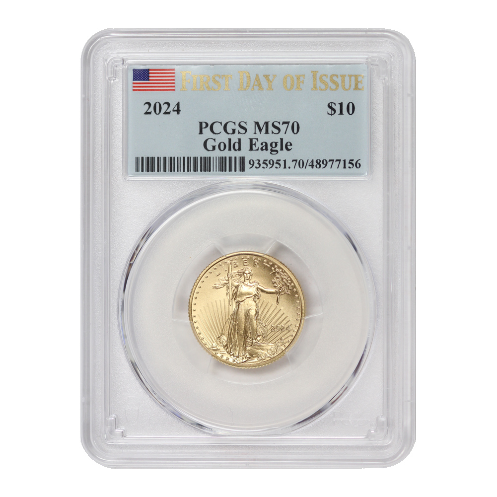 2024 $10 Gold Eagle PCGS MS70 FDOI Flag Label