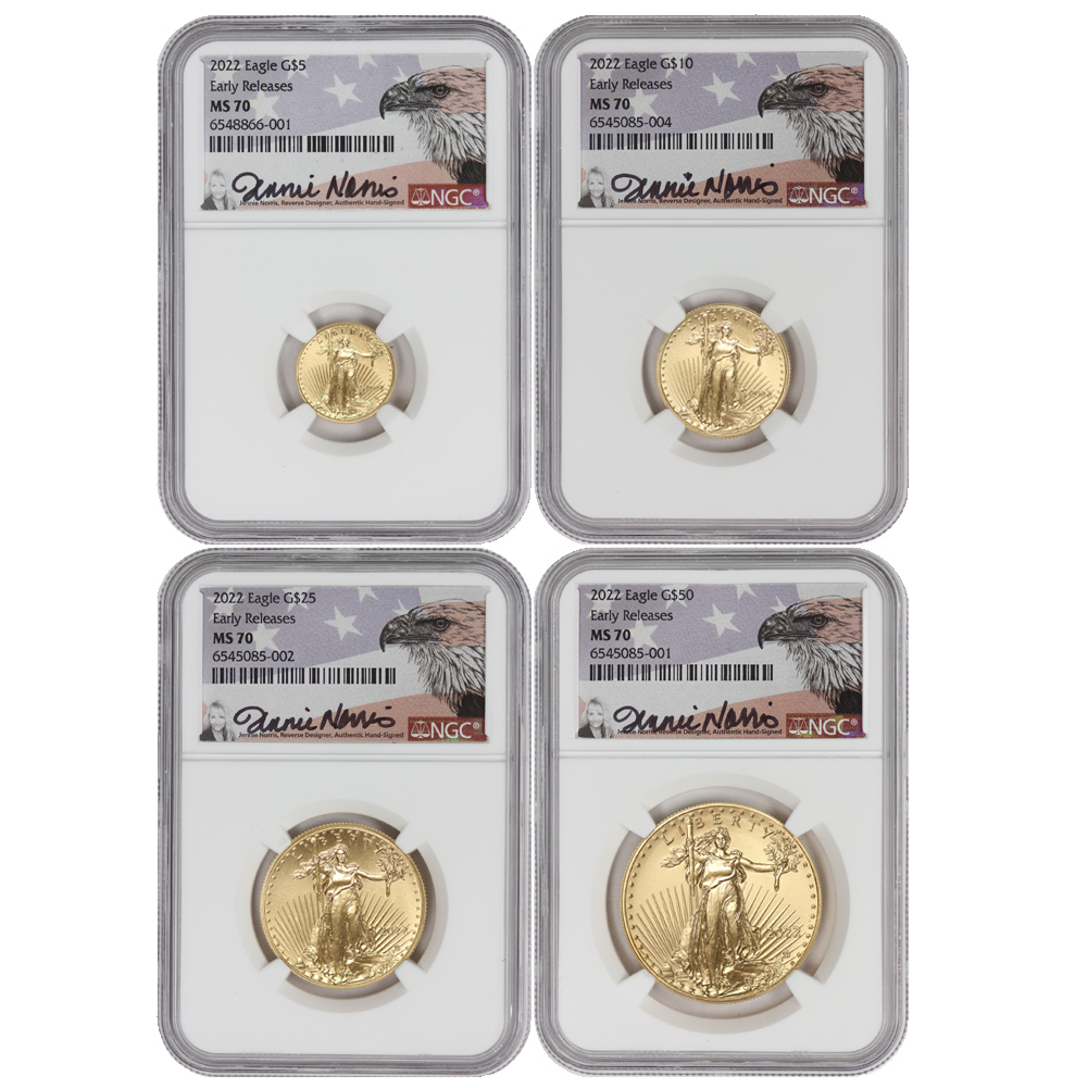 Set of 4 2022 Gold Eagle NGC MS70 ER Norris Label