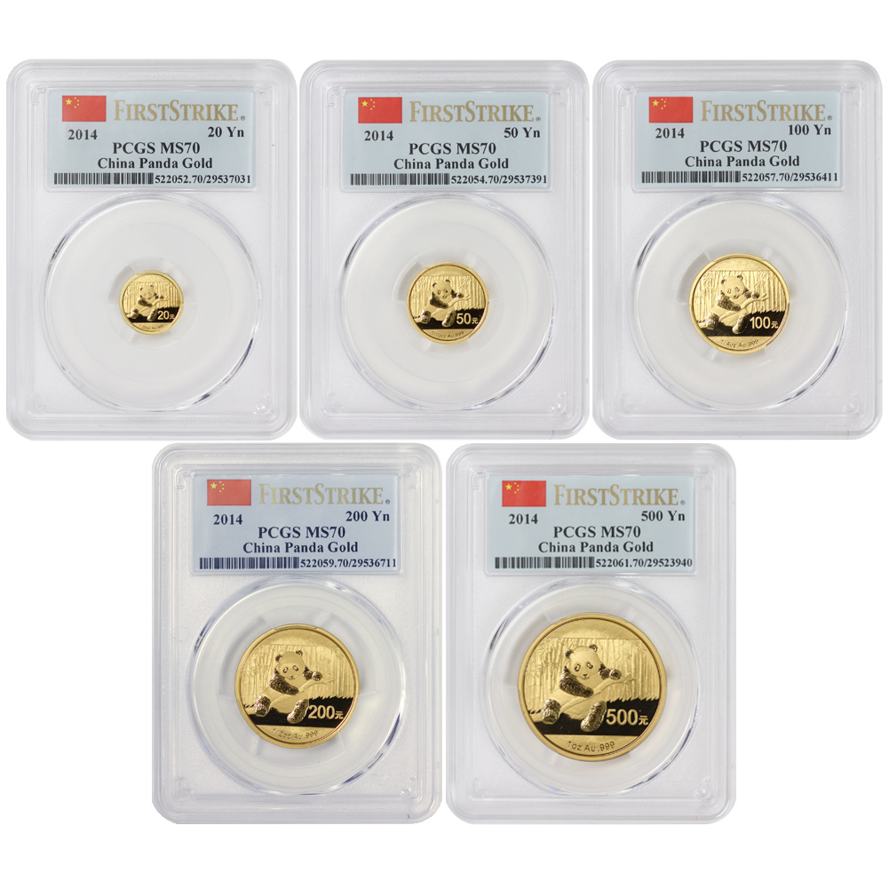 China 2014 Set of 5 Gold Panda PCGS MS70 FS