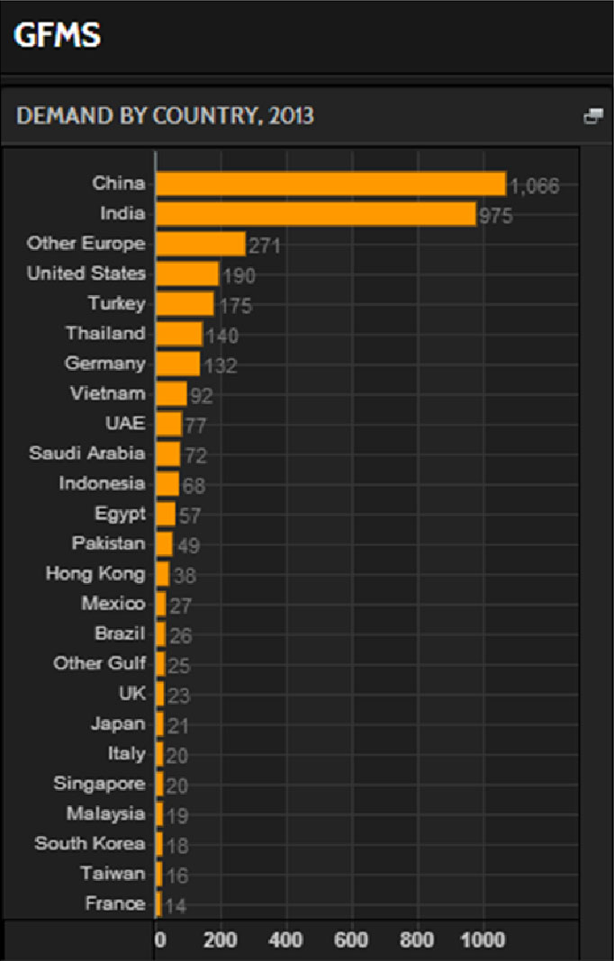 The following is 2013 Worldwide central bank demand for Gold: