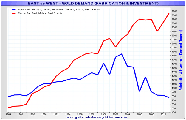 Looking at worldwide gold demand trends, two things are pretty clear. Asian demand is increasing and Western demand is falling.