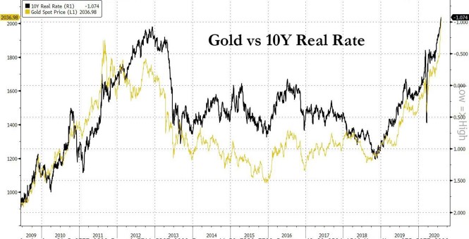 A little over two months ago, Bank of America became gold's biggest cheerleader on Wall Street (and has been spot on so far) in predicting that the price of the yellow metal would hit $3000 in about 18 months due to "loose monetary and fiscal policies around the world" and with the US elections scheduled for November and the EU’s Recovery Fund in place from January 2021, the bank expects that demand will remain supportive next year, even though the pandemic continues to be an immense risk.