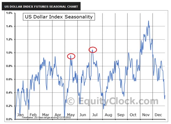 Overall, we believe the Fed’s tightening cycle has more room to run, and a realization is bullish for the USD Index and real interest rates. In addition, we’re days away from the calendar turning bullish for the greenback, and with risk assets rallying in April, investors loosened financial conditions, which uplifts inflation. Thus, don’t be surprised if the narrative shifts dramatically in the months ahead.
