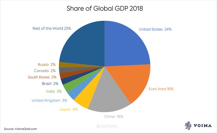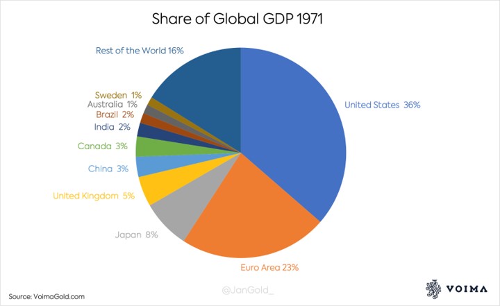 The essence of the chart is that economic output (GDP) is real, and gold is too. When fiat currencies are devalued to alleviate the global debt burden, gold and GDP distribution won't change much, which is beneficial for a shift towards an equitable gold standard.