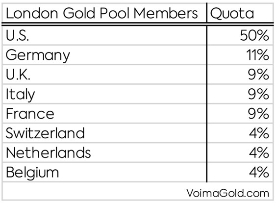 In an attempt to stabilize the international monetary system, a consortium of eight Western central banks set up the London Gold Pool in 1961 to keep the gold price in the free market at $35. Despite being a member of the Pool, France—that was very critical of U.S. monetary policy—repeatedly redeemed dollars at the Treasury. France thus bought gold at the Treasury, to sell in the free market through the Pool.