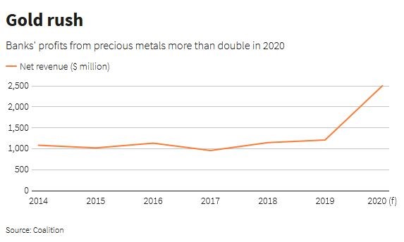 The juicy rewards, which have not previously been reported, mark a stunning reversal of fortune for bullion banks. In March, some had to wipe hundreds of millions of dollars off their trading books as the global pandemic snarled the supply of gold bars.