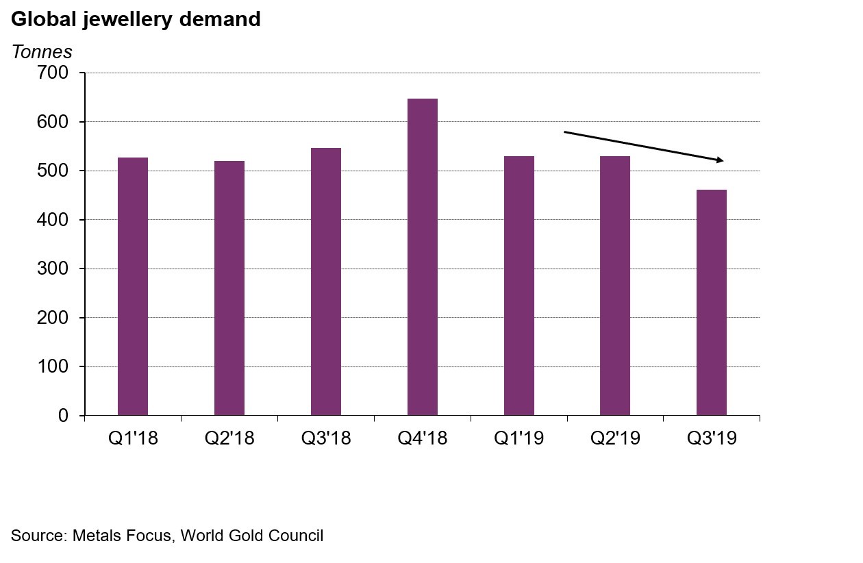 - Gold price volatility and expectations of weaker economic growth may result in softer consumer demand near term