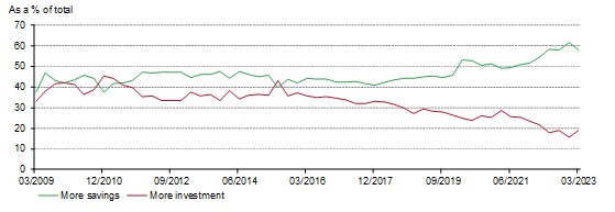 Chart 9: Households’ tendency to save remained elevated whilst their desire to invest rebounded