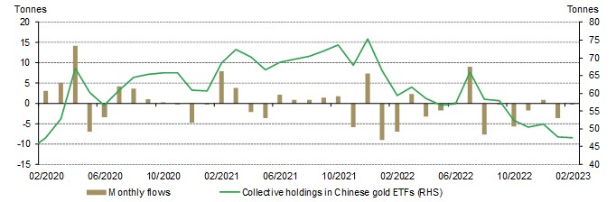 Chart 5: March saw the first Chinese gold ETF monthly inflow in 2023