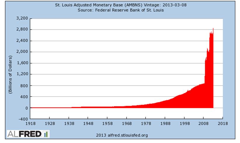 Nevertheless, there is one aspect of the gold/dollar issue that cannot be ignored. Even if the next recession does not result in consumer price inflation, it certainly will induce the fed to increase monetary base. What happens to all this extra money in the economy, surely this is not sustainable?