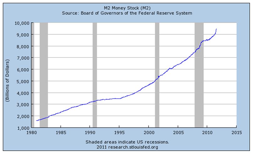 The value of this monetary base is currently sitting at around 4 trillion. All this money is being printed with little effect on prices and a second recession seems to be around the corner. I do not think it is possible for the U.S economy to avoid real measured deflation if we enter recession in the years to come and deflation is not bullish for gold or any asset.
