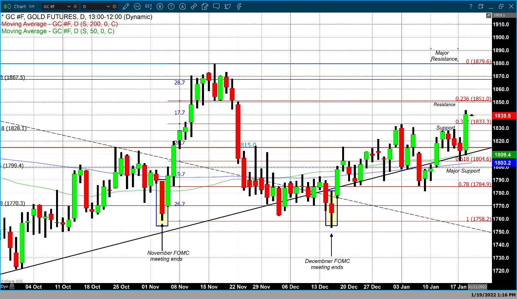 The primary concern is the current level of inflation in the United States which according to the most recent data provided by the government is at 7%. The last time inflationary pressures were this high was in 1982, 40 years ago. Also, market participants are focusing on inflationary concerns in regards to upcoming action by the Federal Reserve at the upcoming FOMC meeting which will begin on Tuesday, January 25, and conclude exactly a week from today. Lift-off, a term used to describe the initiation of interest rate hikes is almost a certainty.