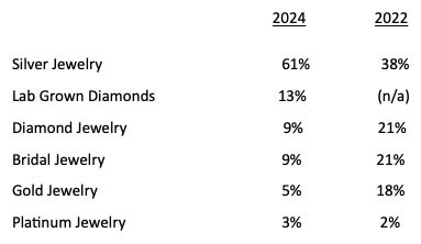 - The average store growth for silver jewelry sales was 20% in 2024, vs. 14% in 2022.