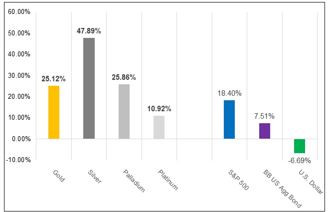 We have often discussed silver's role as a real asset, a currency that generally keeps its value through fiat currency devaluation cycles. Through the COVID-19 pandemic, silver has certainly proven its value as a safe haven asset in portfolios, rising 47.89% in 2020.