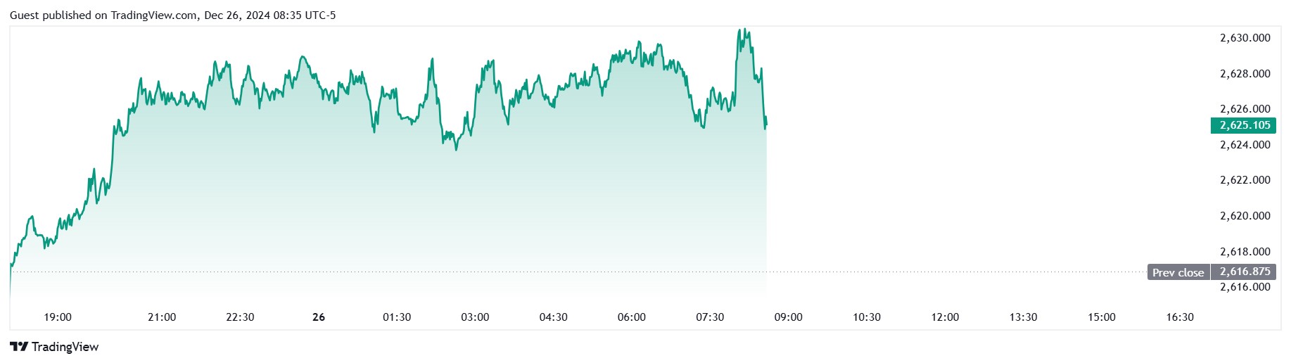 The gold market was trading near the $2,630 level prior to the 8:30 a.m. EST release but dipped lower in the minutes afterward. Spot gold last traded at $2,625.11 per ounce for a gain of 0.32% on the session.