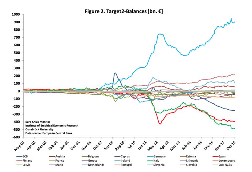 Massive imbalances have accumulated between the intra-regional central banks, as shown in our next chart, starting from the time of the Lehman crisis.
