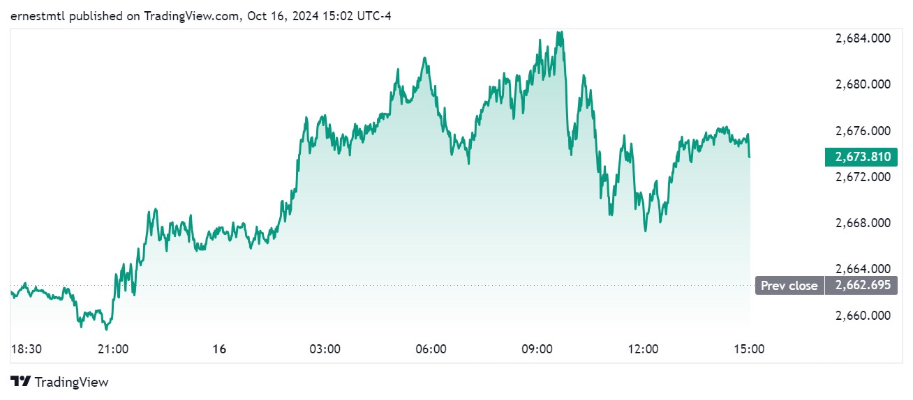 Gold prices are seeing renewed strength in Wednesday’s trading, with spot gold hitting a session high of $2,685.46 per ounce just after the North American market open, and last trading at $2673.78 for a gain of 0.42% on the daily chart.