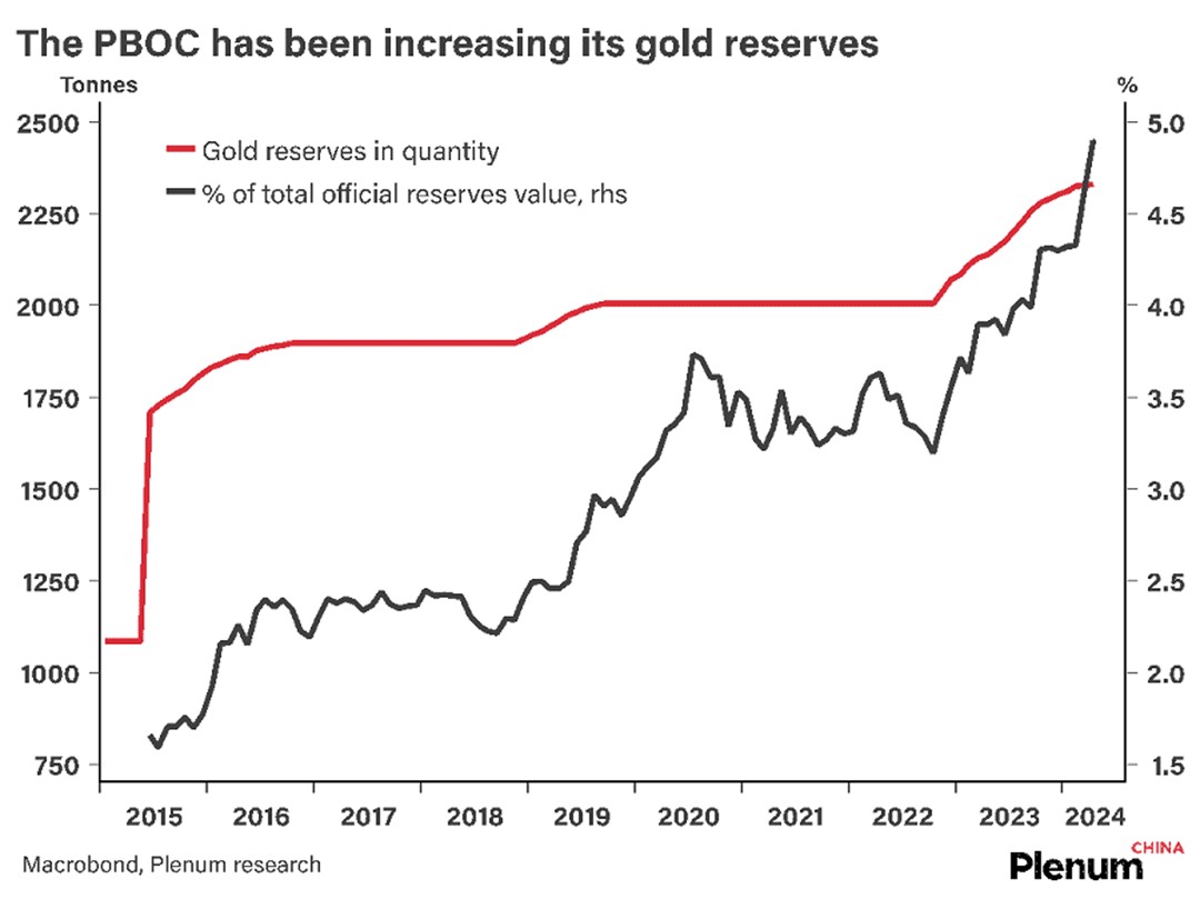 If the 2,700 tonnes of missing gold from the past two years all belongs to the PBOC, that would double its stated gold reserves to nearly 5,000 tonnes.