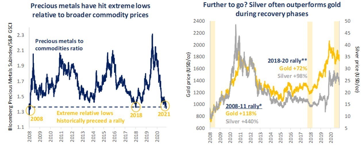 Recent weeks have highlighted the volatility which can face the precious metals sector as investors mull the prospects for higher rates, however in our view nothing has changed with regard to the bullish outlook for precious metals. Persistent low real rates, vast stimulus, debt expansion, along with a rapid expansion of money supply, indicate monetary debasement will continue, strongly favouring hard assets such as precious metals. Importantly, the precious metals sector has not yet reacted to the implications of persistent higher inflation, but as evidence of further inflationary pressure grows, we expect this to benefit silver and gold, as it has done historically.