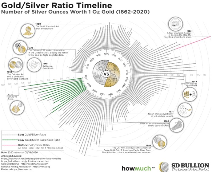 On March 18, the gold-silver ratio, which simply shows how many ounces of silver it takes to buy one ounce of gold, reached an extreme high of 126.43. At the time, Marshall Gittler of BDSwiss, said it was the highest level that number has reached in 5,120 years.