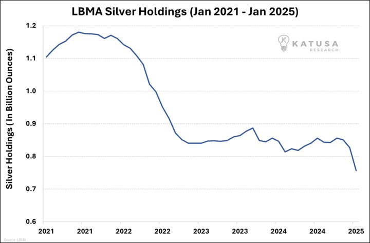 - It dropped 71M ounces, or nearly 10%, in January 2025 alone.