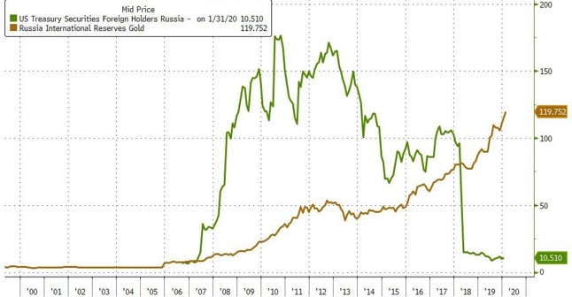 This seems unlikely, as Bloomberg notes, Russia’s relentless gold buying in recent years has been a key pillar of support for the market, putting a floor under prices as investors ditched safe havens and bought riskier, higher-yielding assets.