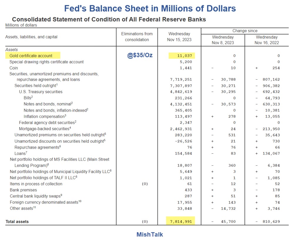The Fed’s gold marked to market at current price of $1984 per ounce. Calculation explained below.