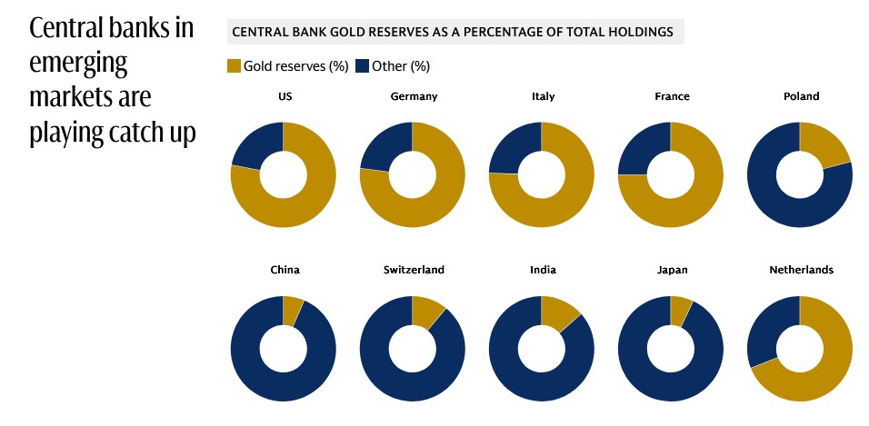Developed economies’ large gold holdings are partly a legacy of the gold standard era, when sovereign money supplies were linked to gold.