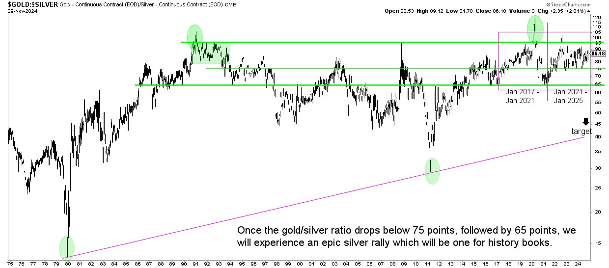 The one data point that makes us conclude that January 2025 is a hugely important month is the gold to silver price ratio.