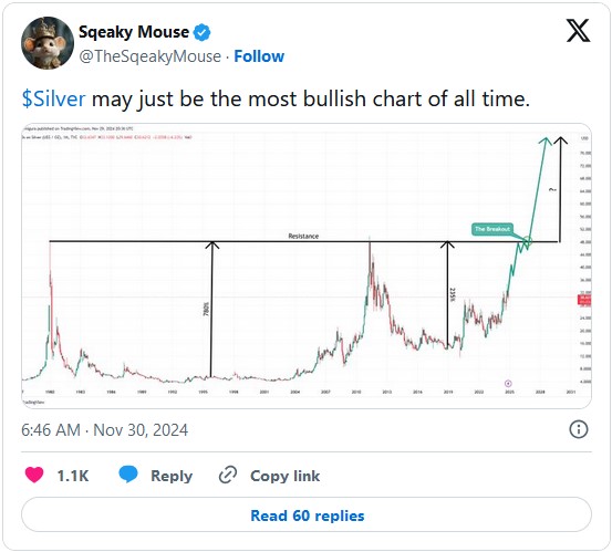 It does not happen often but we’ll feature an X post. The outcome shown below is a feasible path for silver: