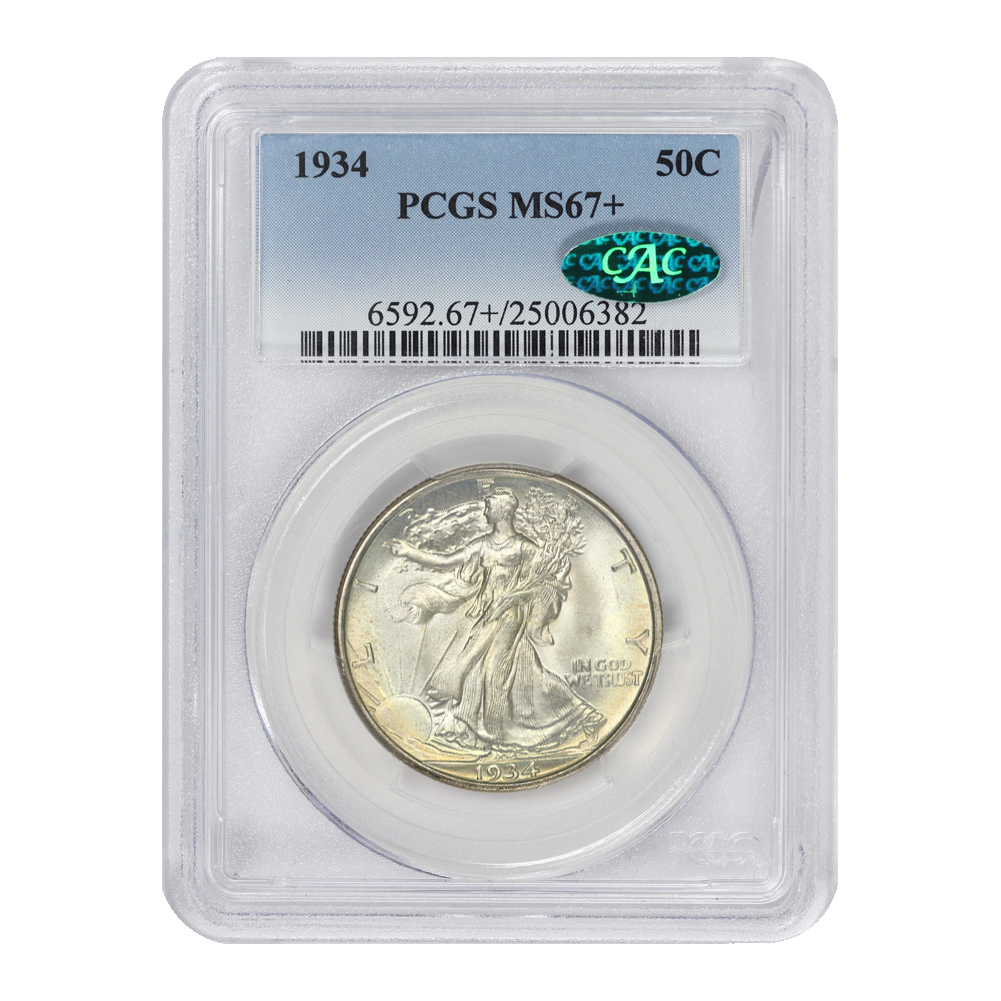 1934 50c Silver Walking Liberty PCGS MS67+ CAC