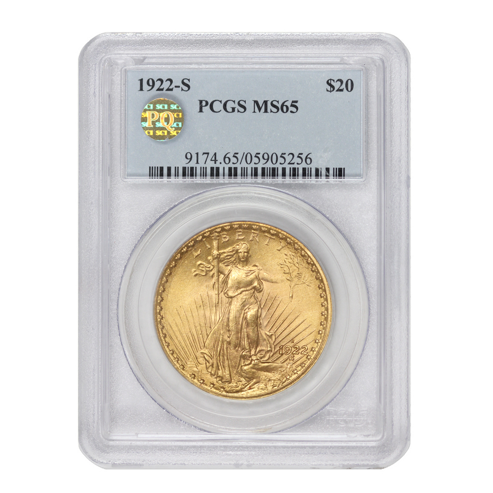 1922-S $20 Gold Saint Gaudens PCGS MS65 PQ
