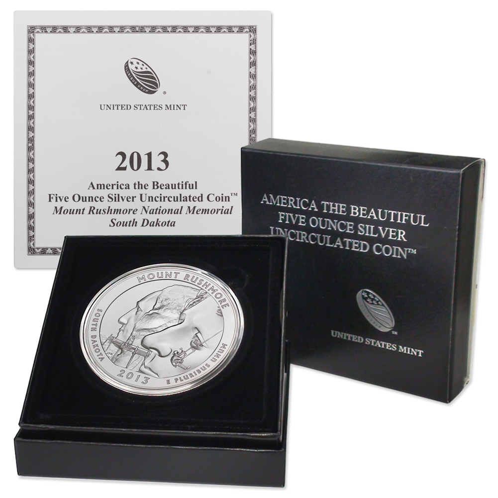 2013-P 5 oz 25c Silver America the Beautiful - Mount Rushmore BU w/ Box & CoA