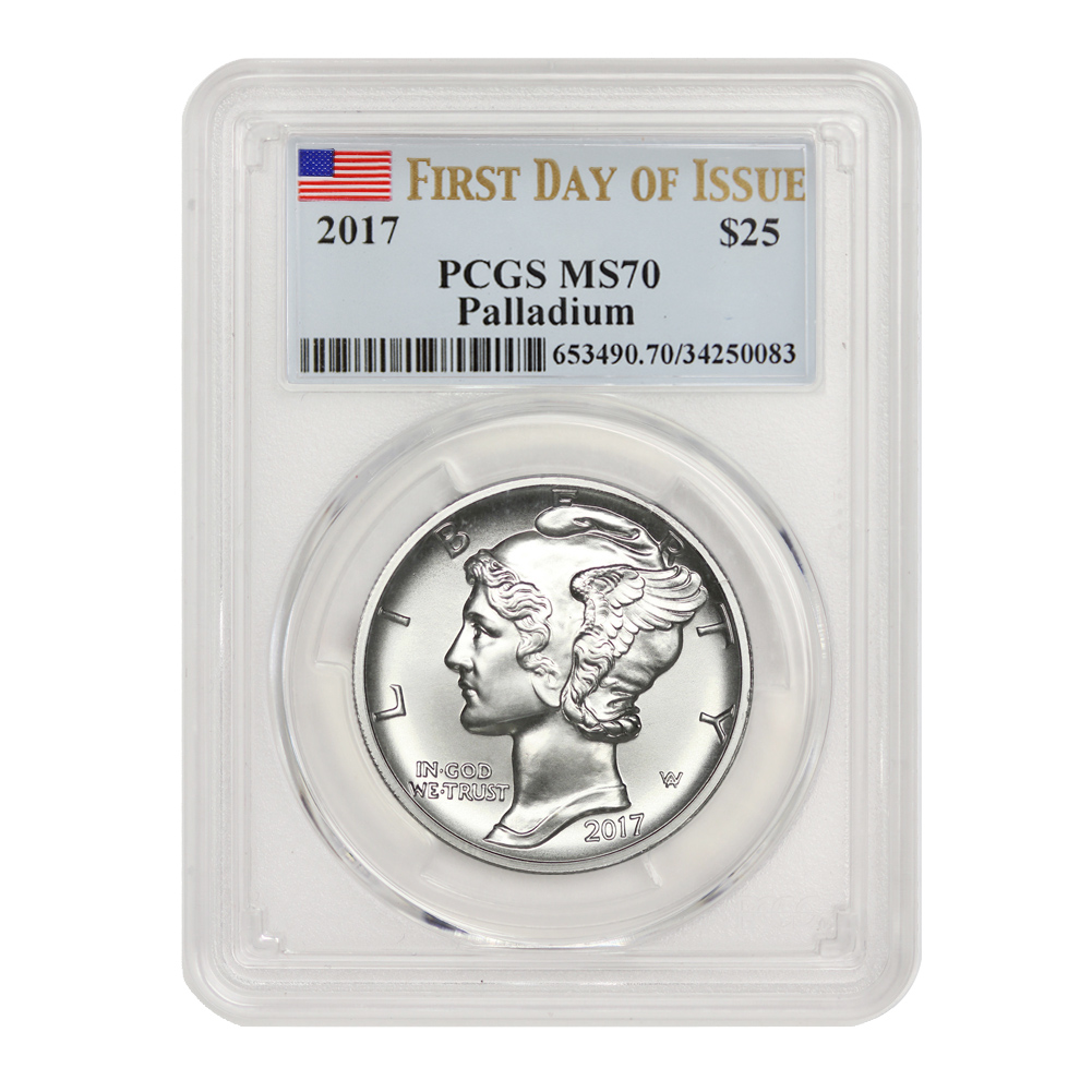 2017 $25 Palladium Eagle PCGS MS70 FDOI Flag Label