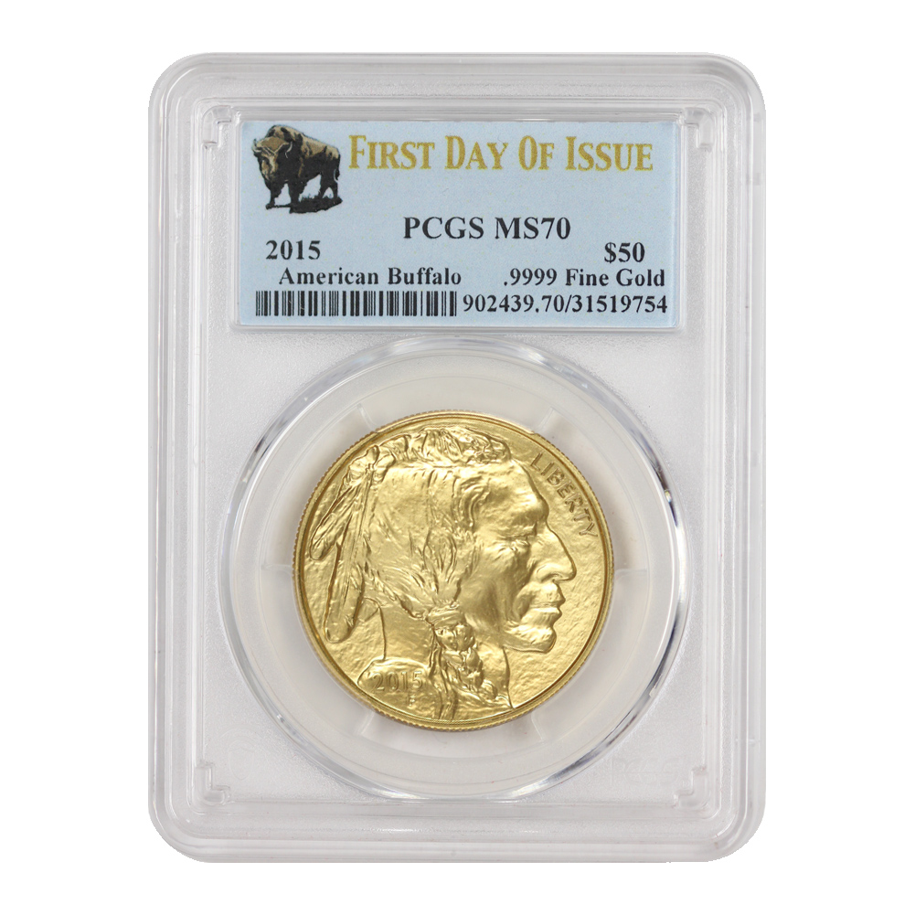 2015 $50 Gold Buffalo PCGS MS70 FDOI Bison Label
