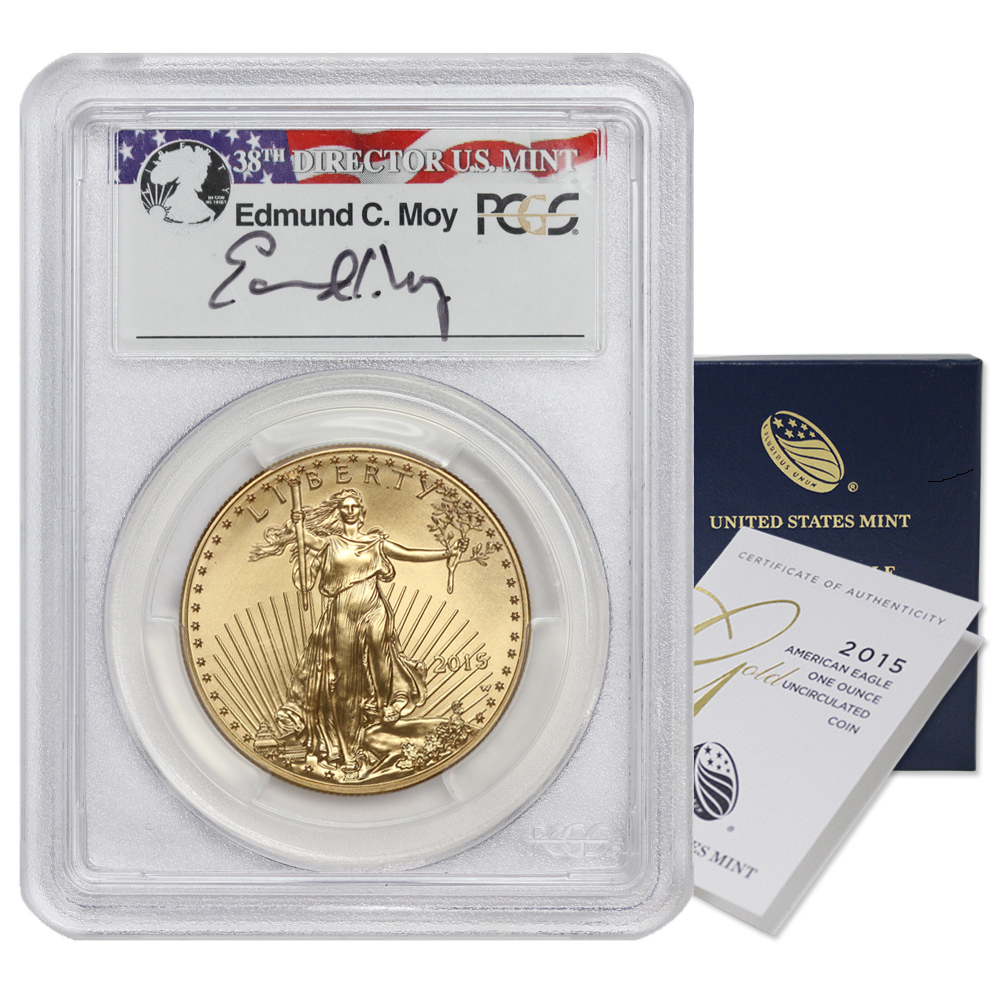 2015-W $50 Gold Eagle PCGS SP70 FDOI Philadelphia Moy Label w/ OGP