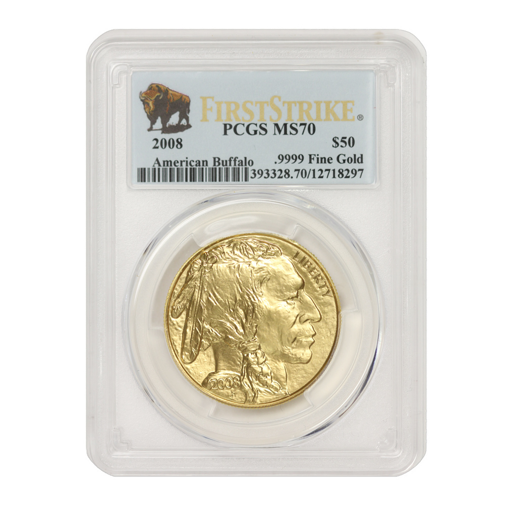 2008 $50 Gold Buffalo PCGS MS70 FS Bison Label