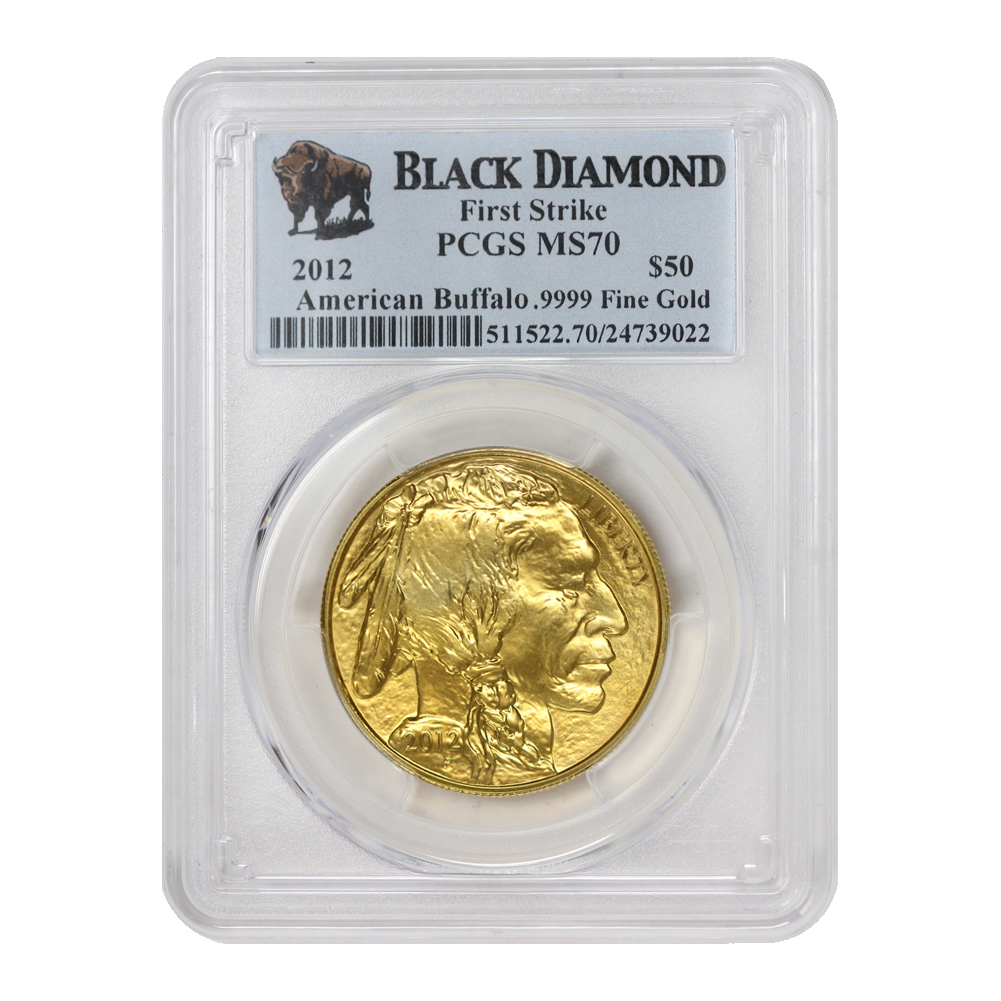 2012 $50 Gold Buffalo PCGS MS70 FS Black Diamond Label