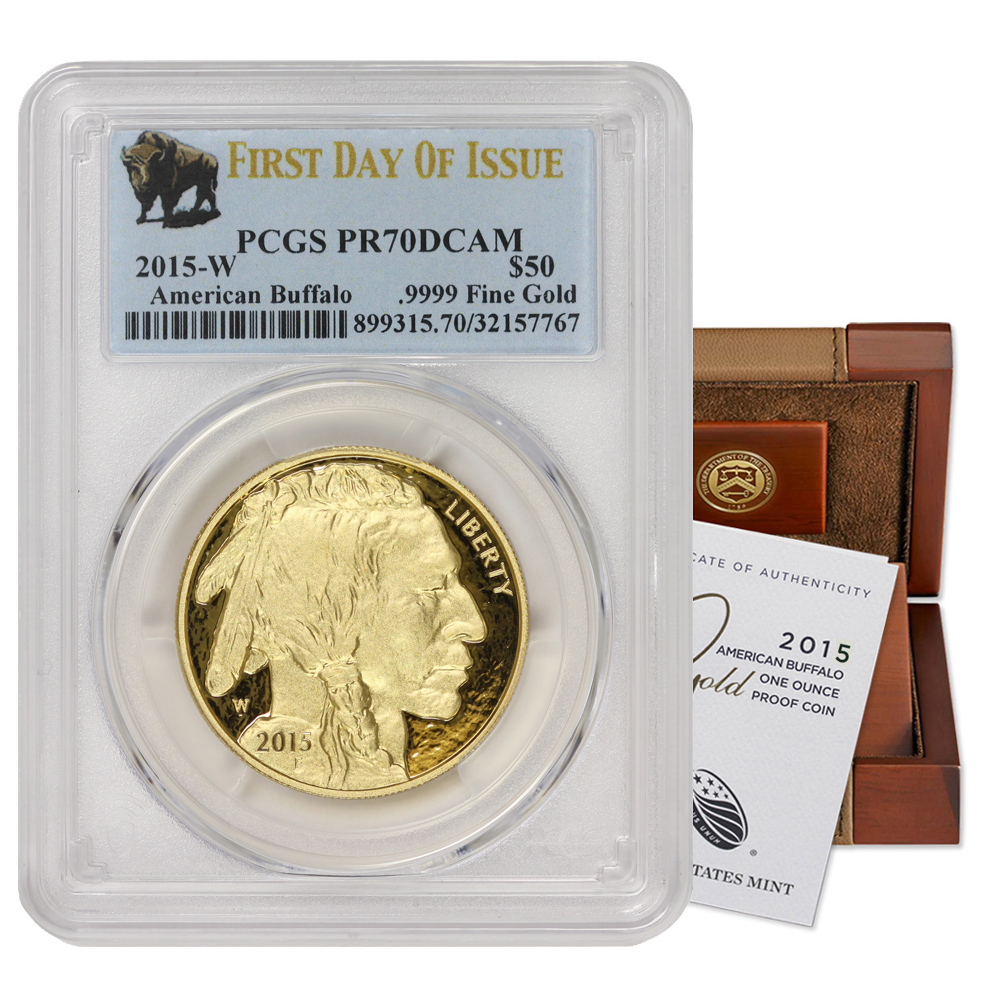 2015-W $50 Gold Buffalo PCGS PR70DCAM FDOI Bison Label w/ OGP