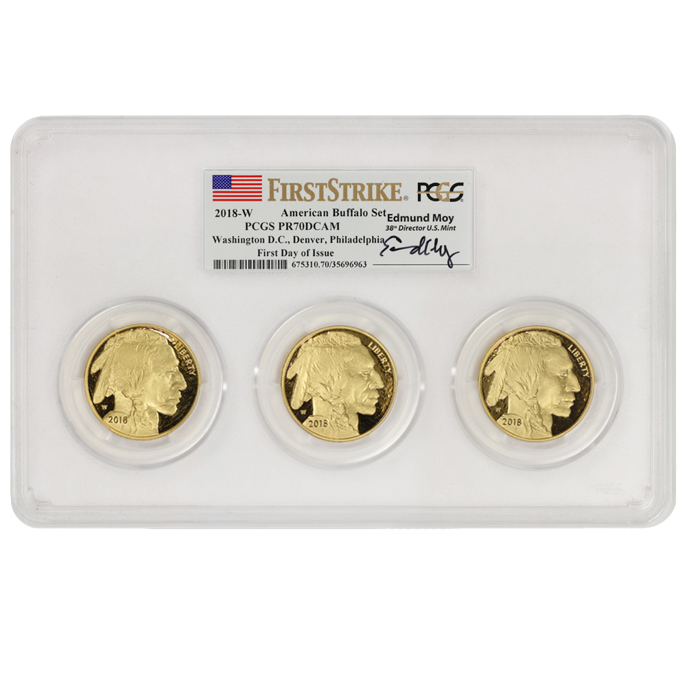 Set of 3 2018-W Gold Buffalo PCGS PR70DCAM FS FDOI DC Denver Philly Moy Label