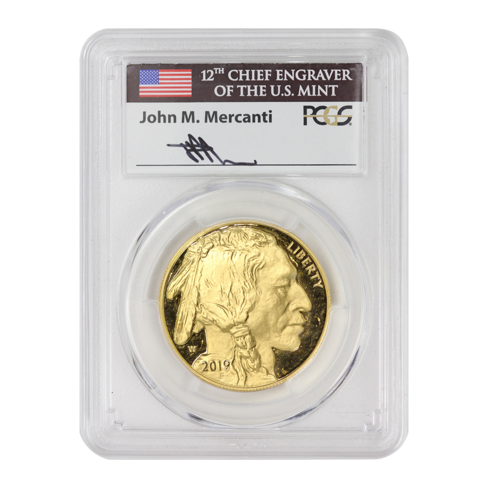 2019-W $50 Gold Buffalo PCGS PR70DCAM FDOI Mercanti Label