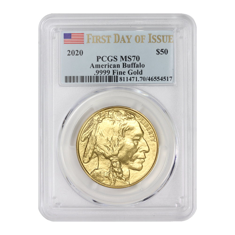 2020 $50 Gold Buffalo PCGS MS70 FDOI Flag Label
