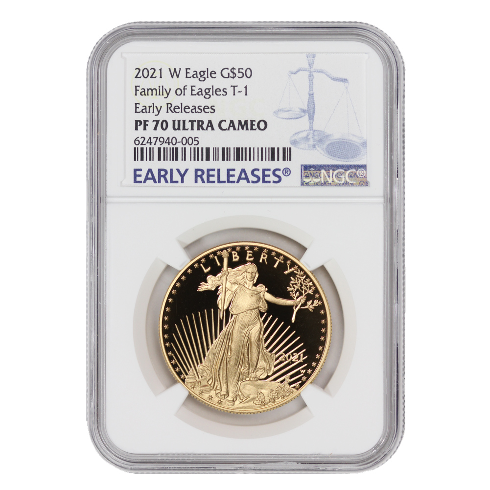 2021-W $50 Gold Eagle T1 NGC PF70UCAM ER Blue Label