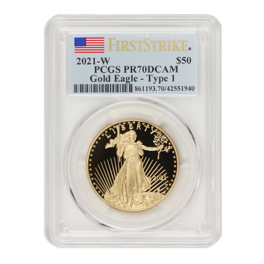 2021-W $50 Gold Eagle T1 PCGS PR70DCAM FS Flag Label