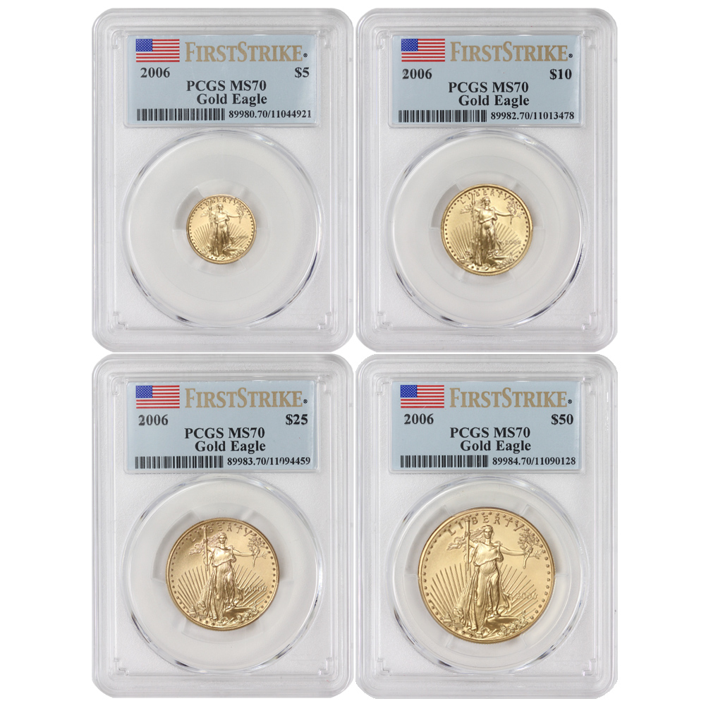 Set of 4 2006 Gold Eagles PCGS MS70 FS Flag Label
